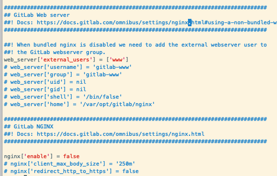 停gitlab自带的nginx,并且修改外部web server权限用户。